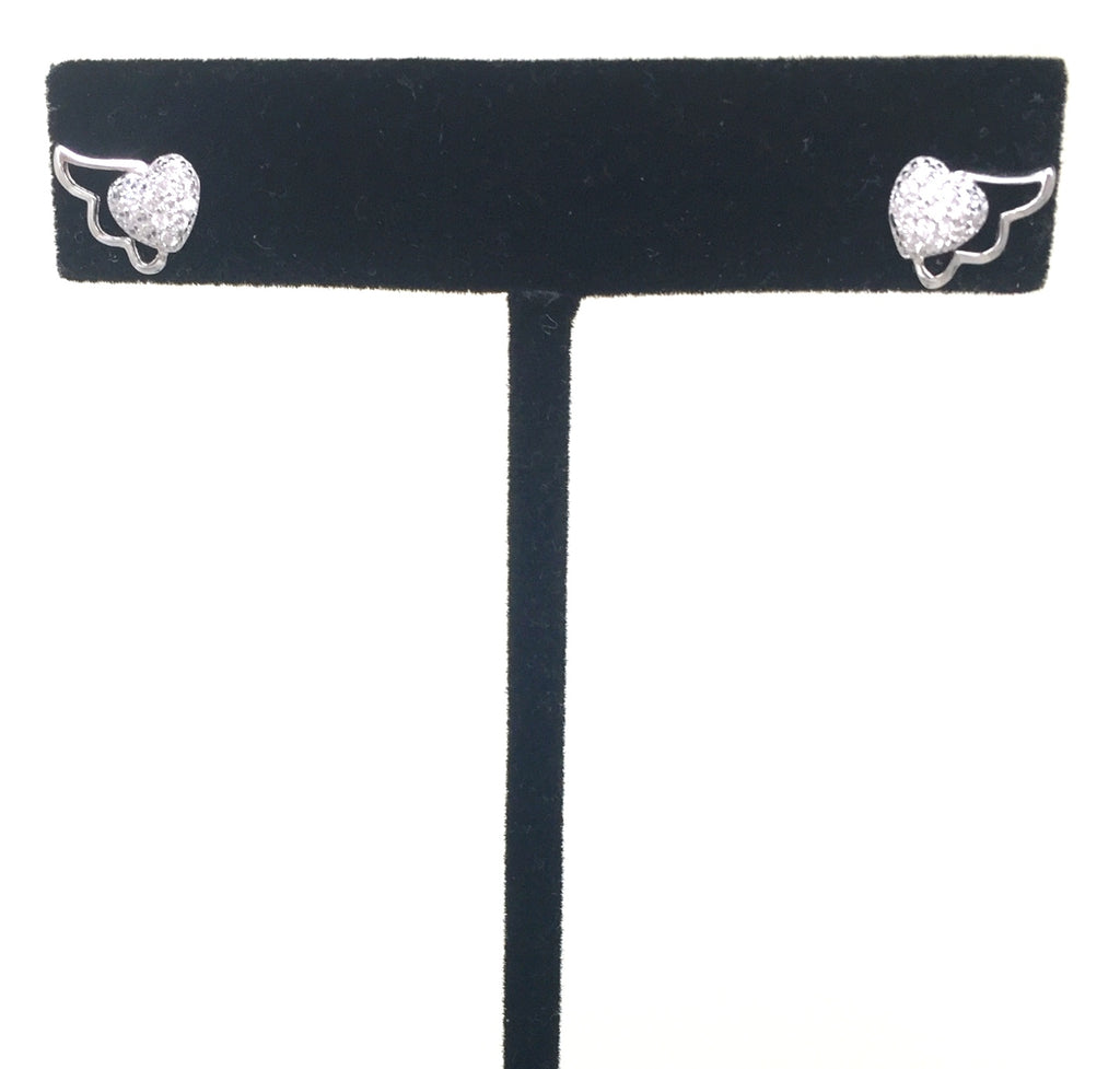 HEART WING STUD PAVE CZ STERLING SILVER EARRINGS